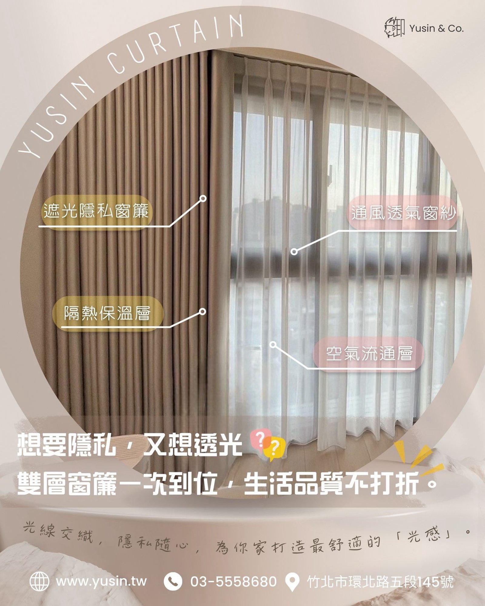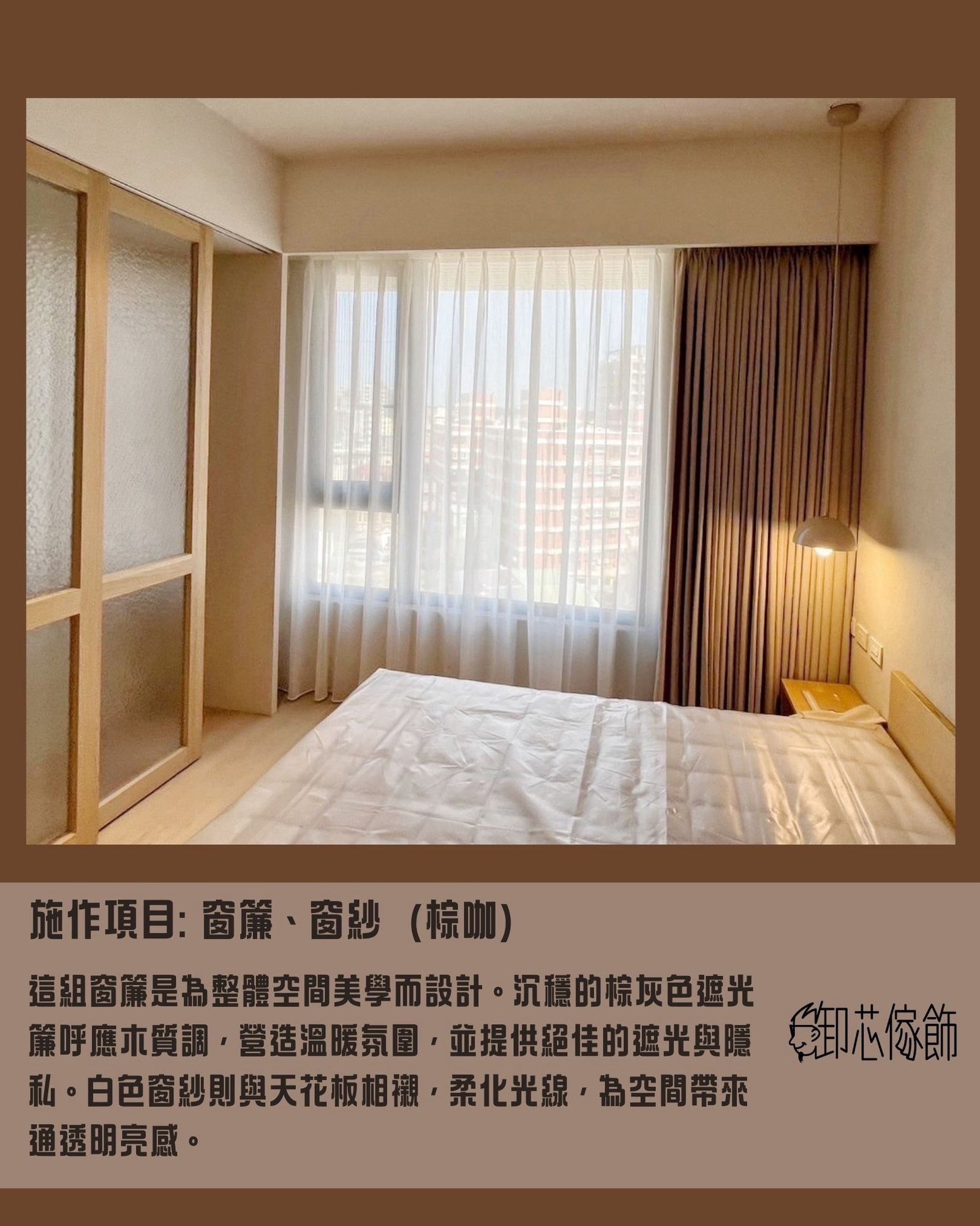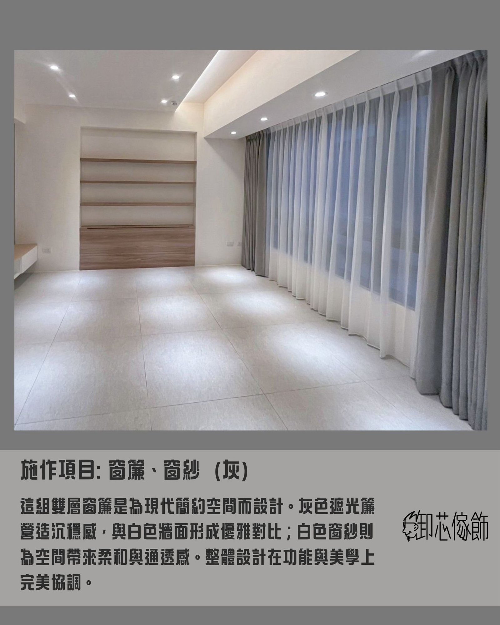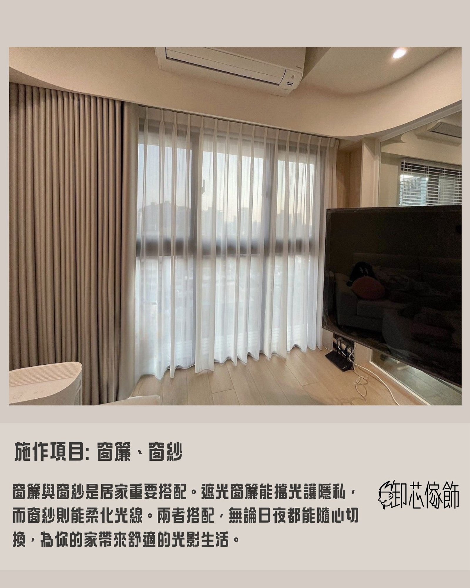 案例描述御用傢飾 深得您芯|御芯傢飾想要隱私,又想透光?雙層窗簾一次到位,生活品質不打折。—————————————–窗簾、窗紗想打造高質感的居家空間?窗簾與窗紗是你的最佳選擇!遮光簾能有效阻擋光線、保護隱私,給你一個安穩的休息環境;窗紗則能柔化日光,讓室內充滿溫暖的自然光。兩者搭配,輕鬆切換光線模式,為你的家創造專屬的光影美學。—————————————-